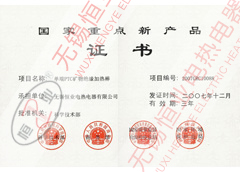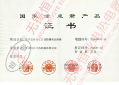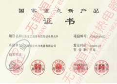 本公司的產品已全面通過電氣3C認證、全國防爆電氣產品生產許可證認證,且取得了國家防爆合格證、其中35項產品獲得國家專利證書、中國船用產品鑒定、英國勞式船級社認證、江蘇省科技成果鑒定。產品榮獲:12項江蘇省高新技術產品,8項產品列入國家火炬計劃。2002年合金PTC管狀電熱元件獲國家創新基金65萬人民幣。2005年硅橡膠電熱帶獲得國家創新基金75萬元人民幣。所生產的產品被無錫市評為“