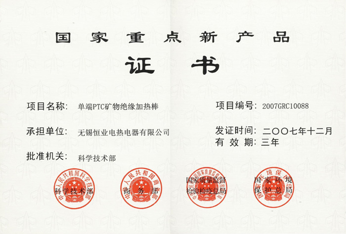 上一篇: 單端PTC礦物絕緣加熱棒高新技術(shù)產(chǎn)品認(rèn)定證書
