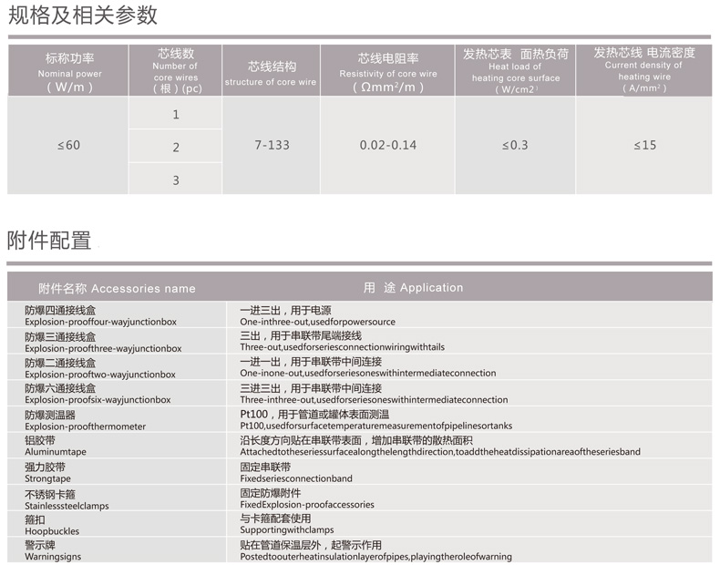 各種固定管線、管網的伴熱、石油石化、化工、電力、化纖、港口碼頭、油田等長輸管線或大型罐體的伴熱。